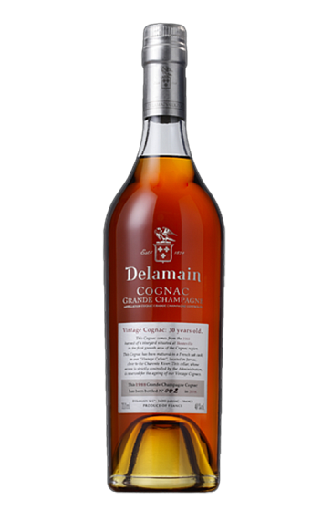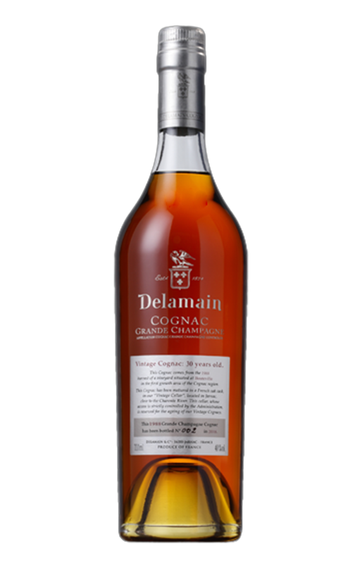 Delamain Millésimé 1989 est un cognac élaboré à partir d'une récolte spécifique, ce qui est inhabituel dans la création de ce type de boissons, car la plupart ajoutent des eaux-de-vie de différentes récoltes pour obtenir une certaine uniformité. Pour ce faire, de petits lots sont sélectionnés qui, après des années d'élevage en fût, sont mis en vente. Ce fut le cas de ce millésime 1989, commercialisé 30 ans plus tard. Il provient d'un seul vignoble de la commune de Marancheville et se révèle extrêmement charnu et persistant en bouche, offrant des notes de figue, de coing et d'anis, avec un fond de clou de girofle, de cannelle et de café. Idéal pour être dégusté et apprécié tranquillement lors d'un long après-dîner.