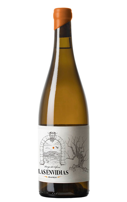 Las Envidias, c'est le nom du vin de la trilogie Parajes del Infierno, fait uniquement avec du raisin Palomino. Il vient d'une parcelle plantée sur des sols de sable éolien à Alcazarén (Valladolid). Sa production est tout aussi spéciale, car après une fermentation spontanée en fûts et en botas jerezanas (fûts de xérès), il est élevé sous voile de fleur pendant 12 mois. Un vin unique, avec un goût salé, vif et les notes typiques de résine et de fruits secs des vins de Jerez. Avec une production super limitée, ce vin est devenu un blanc mythique