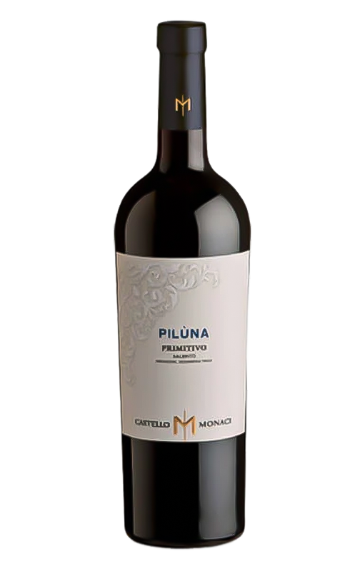 Castello Monaci Pilùna est un vin mono-cépage de Primitivo originaire du Salento. Son léger passage en fût pendant 6 mois ne masque pas le caractère fruité de ce raisin typique des Pouilles, caractérisé par son intensité de fruits rouges et noirs, ses notes épicées de poivre noir, de cannelle et de clou de girofle, ses tanins présents mais doux et sa jutosité au palais.