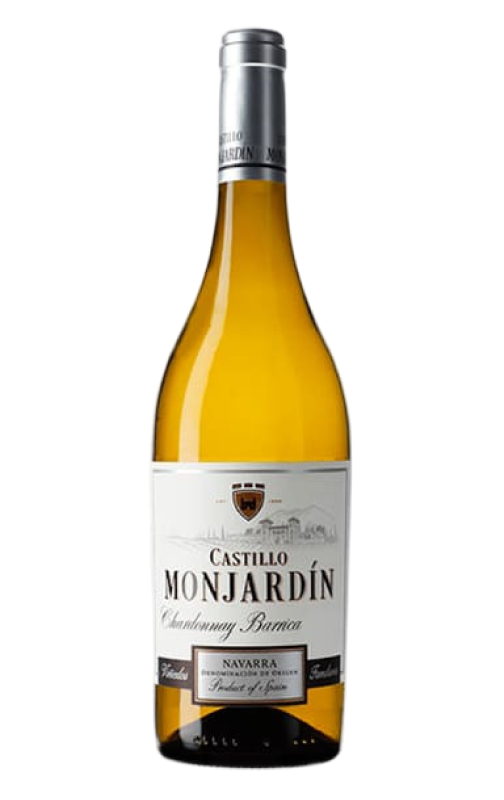 Castillo de Monjardín définit ce vin blanc comme « l'élégance du Chardonnay », car il est entièrement élaboré à partir de ce cépage, réputé pour être le plus utilisé dans les vins blancs de Bourgogne. Ici, il est cultivé dans des vignobles situés à Ázqueta, au sein de la région navarraise de Tierra Estella. Après la vendange, qui s’effectue d’ailleurs de nuit pour préserver la fraîcheur et les qualités du fruit, il fermente en fût sur lies et est élevé pendant 6 mois également en fûts de chêne, ce qui confère davantage de onctuosité et de structure à ce vin qui s’avère extrêmement gastronomique.