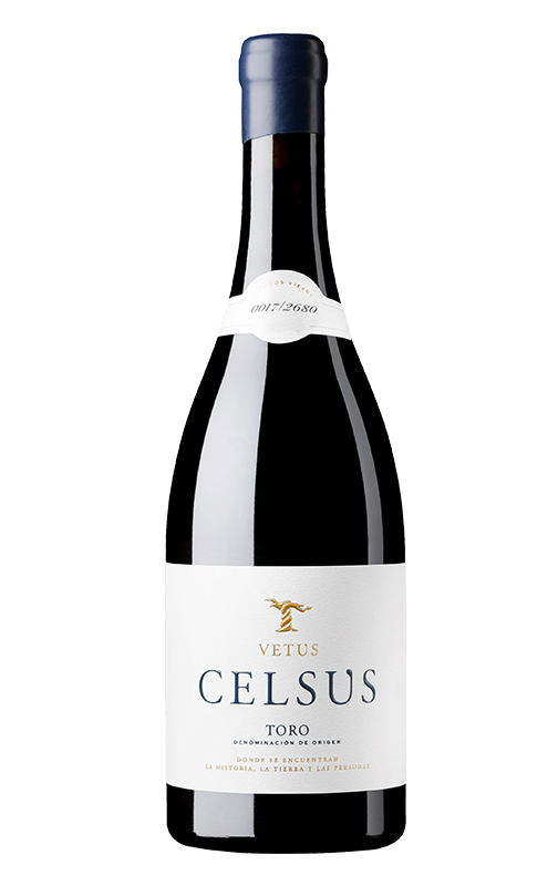 Celsus est le vin haut de gamme de Vetus, provenant principalement d'un très ancien domaine, préphylloxérique, à faible rendement, situé à Morales de Toro. Il se distingue par son nez corsé aux arômes de fruits confits et d'épices douces. Au palais, on retrouve une multitude de nuances issues de l'élevage, associées à celles du fruit mûr. Il est savoureux, vigoureux, avec une très longue finale et un grand potentiel d'évolution en bouteille.