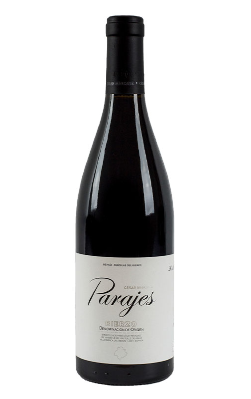 Parajes est le vin régional de César Márquez. Élaboré à partir d'une grande variété de parcelles aux caractéristiques différentes, ce vin rouge séduit par son expressivité, son parfum et son verre facile et charmeur. Son excellent rapport qualité-prix en fait l'une des meilleures découvertes du Bierzo.