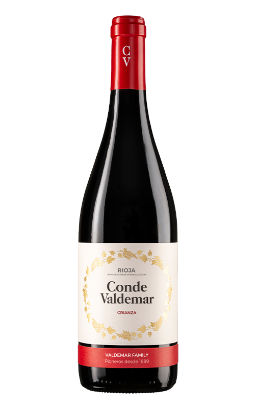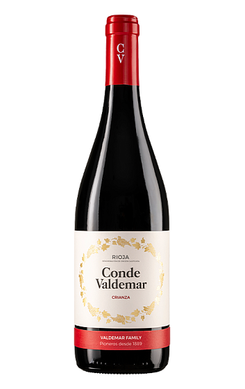 Le Conde Valdemar Rouge crianza est élaboré à partir de Tempranillo et d'un faible pourcentage de Mazuelo et de Grenache provenant de vignobles situés dans la Rioja Alavesa et la Rioja Alta. Son nez est corsé, avec des arômes dominants de fruits rouges et des notes épicées issues de son long vieillissement de 19 mois en fûts, avec des notes de noix de coco et de vanille. Au palais, il présente une bonne structure, des tanins agréables et une longue finale.