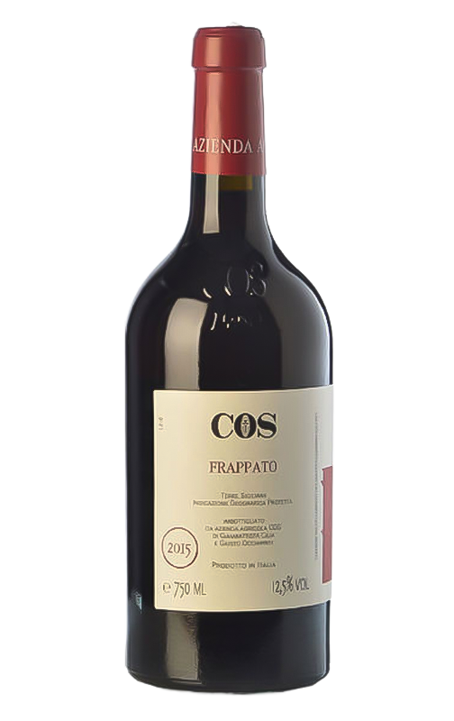 Le COS Frappato tire son nom du raisin à partir duquel il est élaboré : le Frappato di Vittoria, une commune sicilienne d'où il est originaire, riche d'une grande tradition viticole. Le vin est issu de vignobles relativement jeunes, d'une moyenne d'âge d'environ 15 ans, plantés sur des sols argileux. Il est intéressant de noter que son élevage se fait dans des cuves en ciment afin de préserver l'identité et la fraîcheur du raisin et d'éviter que le bois ne masque l'expérience sensorielle. Nous sommes en présence d'un vin rouge à l'ADN méditerranéen: vif, direct et frais.