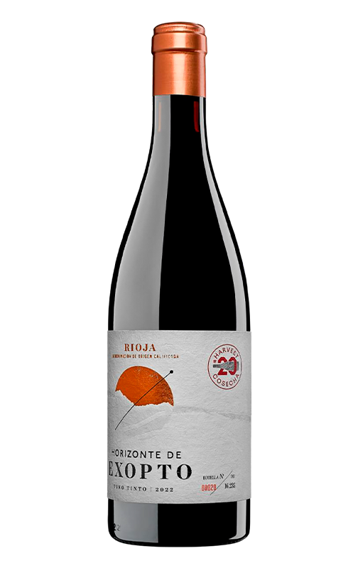 Horizonte de Exopto, le premier vin produit par le domaine en 2003, est peut-être celui qui a le plus d'identité, de structure et de volume de la Rioja. Il vise un style moderne, intense, avec plus de couleur et juste ce qu'il faut de bois. Il représente avec brio tout le caractère de la Rioja Alta. Il partage avec les autres vins du domaine la même philosophie d'assemblage qui vise à obtenir un rouge harmonieux aux nuances corsées