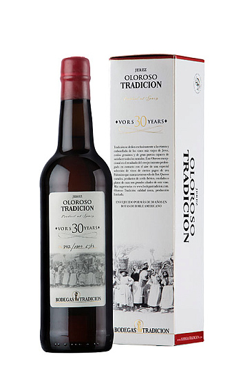 L'oloroso est le vin de Jerez par excellence, et celui du domaine Tradición est le plus long et le plus corsé de toute sa gamme, tout en étant également le plus doux et le plus élégant. Il est issu de l'assemblage de soleras datant des XVIIe et XIXe siècles. Son vieillissement, d'une durée moyenne de 45 ans en fûts oxydatifs (sans aucun contact avec la fleur), lui confère une série de caractéristiques telles que des notes de bois nobles, un palais puissant et un arrière-goût de chocolat noir.