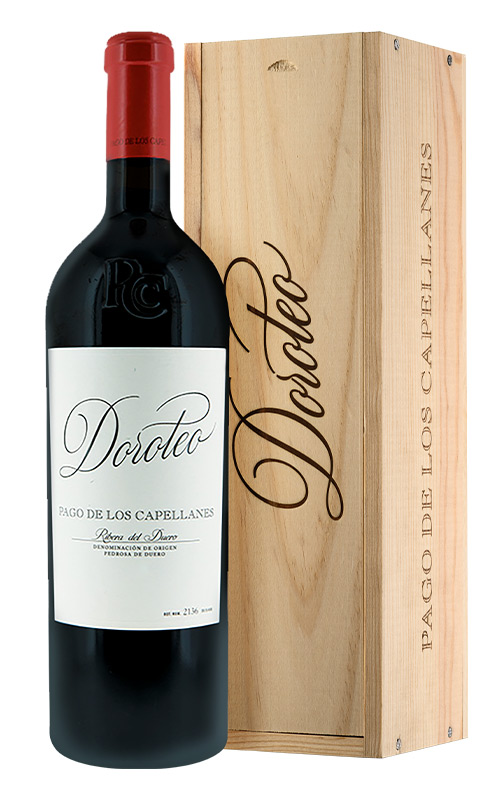 Pago de los Capellanes a choisi le nom de Doroteo, celui du précurseur du domaine, pour le vin avec lequel ils ont célébré leur 25e anniversaire. Il s'agit d'une production très limitée pour un vin rouge élaboré à partir du raisin roi de la Ribera del Duero et élevé 36 mois en fût. Au nez, il présente des arômes de compote de fruits noirs, avec des notes d'épices douces et balsamiques, et un palais charnu et voluptueux