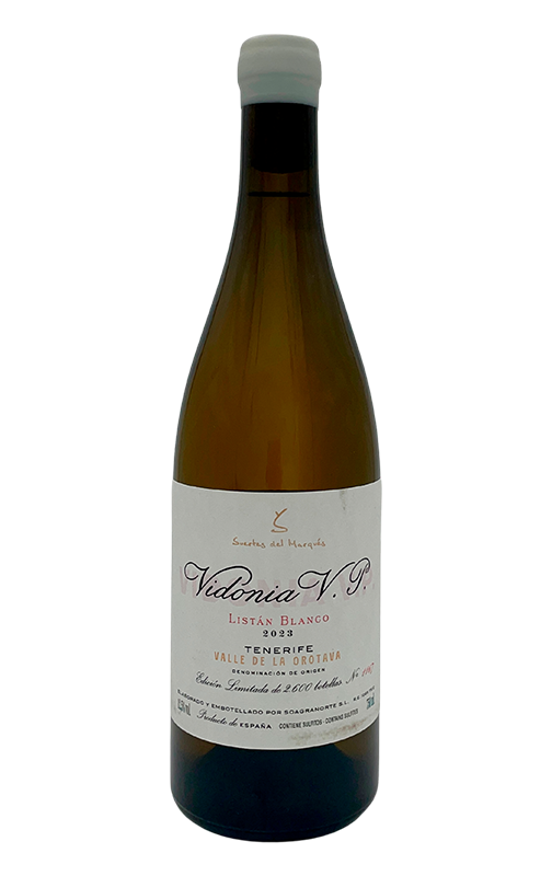 Au XVIIe siècle, les vins de Tenerife élaborés dans le nord de l'île à partir de cépages blancs minoritaires étaient connus sous le nom de Vidonia . Les meilleures parcelles de Listán blanco du Paraje Las Suertes constituent la base de ce vin blanc, le plus corsé, profond et élégant du domaine. Une finesse remarquable. Il s'agit d'une cuvée issue de vinifications séparées selon les types de sol.