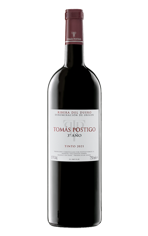 Ce coupage, anciennement connu sous le nom de Rouge crianza, Tomás Postigo 3º Año, est dominé par le Tinto fino, issu de vignobles sélectionnés situés à une altitude de mille mètres au-dessus du niveau de la mer. Tomás Postigo démontre une nouvelle fois son savoir-faire en « réinventant » l'emblème de la maison dans un Ribera enveloppant, plein de saveurs, avec des tanins doux et mûrs. Ici , en format 1,5 litre.