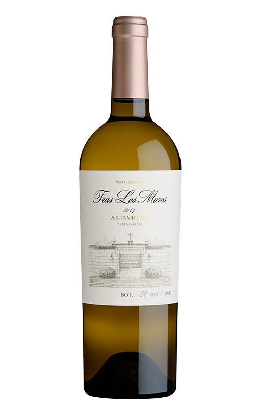 Tras los Muros est la nouvelle création de Pazo de Señoráns. Produit sous la direction de l'œnologue Berta García, ce vin blanc de Rias Baixas a été vieilli en fûts de chêne pendant 6 mois. Au nez, il offre des arômes de fruits blancs (poire d'eau), de fruits à noyau (nectarine) et une touche d'agrumes (citron vert). A l'ouverture, des notes mentholées et réglissées peuvent être appréciées. En bouche, il est croquant, avec une amertume parfaite et un fût parfaitement intégré. Parfait à boire dès à présent pour les plus impatients, même si ce vin promet de surprendre en vieillissant.